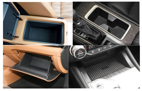 储物空间方面,全新天籁为我们提供的有前后排杯架、门把储物盒、副驾驶手套箱、前排中央扶手盒等空间,值得注意的是,全新天籁的储物盒大多比较规整,从图中可以看得出来,这种平整的设计,在平时放置物品的时候非常方便,而且容量也都比较大。在方向盘下方油箱盖位置,还有一个小盒子,可以放一下驾驶者、行驶证等物品。