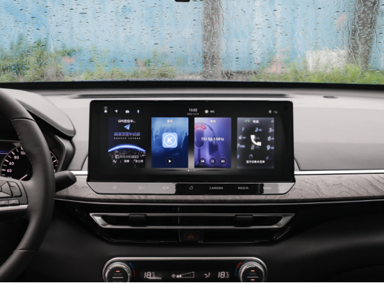 中控屏经过全新设计,以规整的长方形代替了老款的梯形结构,尺寸达到了12.3英寸,屏幕分辨率有所提升,分辨率达到了2K,超过了常用的平板。主页采用了卡片式布局,符合主流的审美,同时还能提升核心功能的操作便捷性。悬浮式的结构下方还适配了多个虚拟按键,相当于导航菜单栏,方便驾驶者快速寻找到想要的功能。