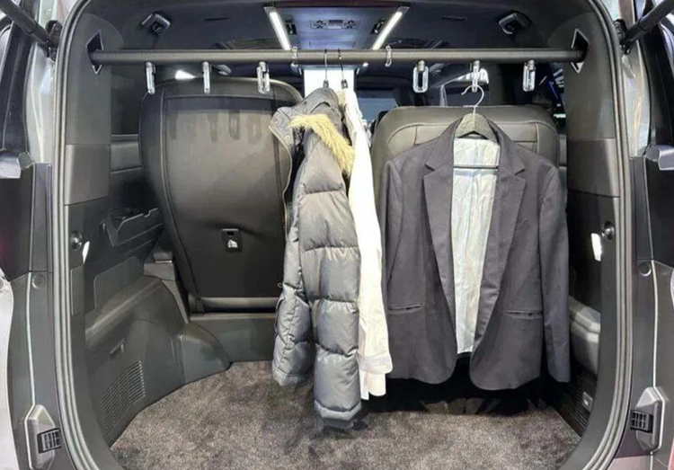 有意思的是,官方为新车加入了衣架,前排扶手后方还有“冰箱”,无疑满足商务人士的出行需求。