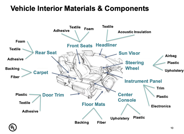 报告指出,车内挥发性有机物,如甲醛,苯、甲苯等物质的浓度是影响车内空气健康的关键,这些挥发物可能来自车辆各个部位、零件,比如说: