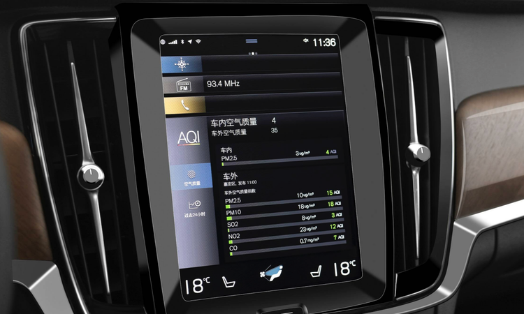 沃尔沃S90是如何净化舱内空气的呢?首先AQI空气质量实时监测系统会实时监控车内PM2.5空气质量指数,以及由第三方提供的车外空气质量情况 ,根据车内车外的空气质量及时做出响应。