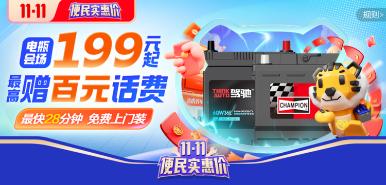 当然,在了解“电瓶坏了该找谁”、和“该买啥样的电瓶”之后,也别忘了最后一件事儿:啥时候买?眼下距离“双11”很近了,眼看着马上要入冬,途虎专门为大家准备了优质的冠军电瓶!“双11”期间购买冠军电瓶,最高返150元话费呢!这可是明明白白的硬通货啊!