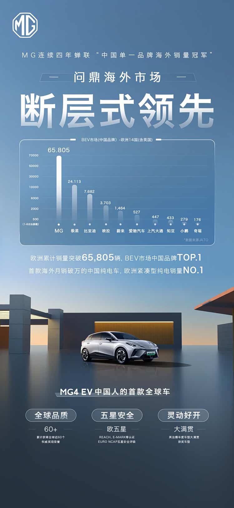 作为一个拥有百年历史的汽车品牌,MG品牌在智电时代的变革节点实现了“弯道超车”, 出海百万销量的达成,不仅是自身实力的一种展示,也标志着它正加快布局纯电产品阵营的脚步。现如今,中国用户已不再迷恋合资品牌,对日系车和德系车的情怀也慢慢减退,取而代之的是更具有质价比的自主品牌,MG4 EV出海冠军版就是很直接的代表。