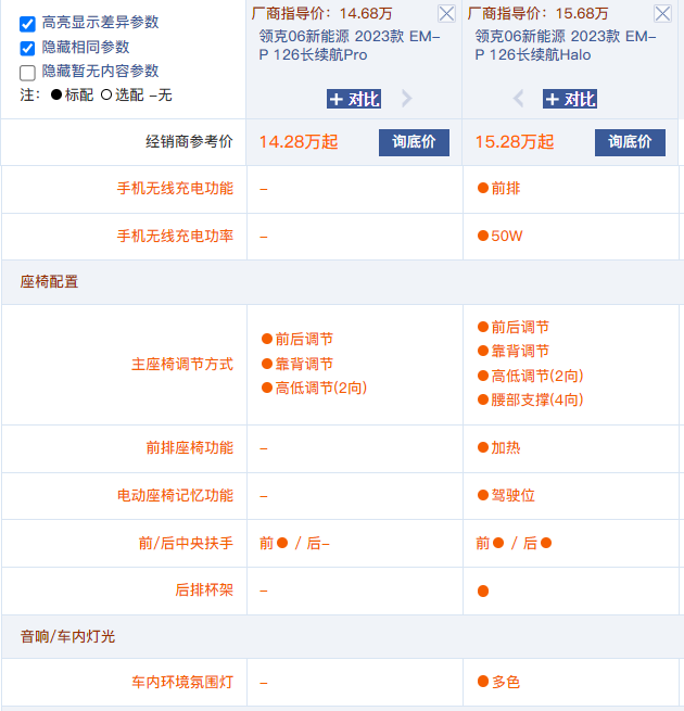 这是动力上的差别,除此之外,两款车的差别还有很多。