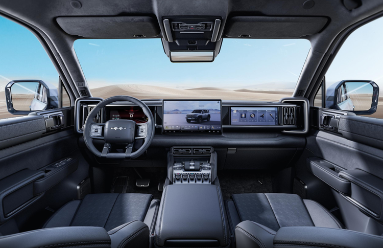 内饰方面,坦克400 Hi4-T匹配12.3英寸全液晶仪表+16.2英寸悬浮式中控屏,中控屏下方配有多个实体按键,主要是用来控制空调相关功能,副仪表台位置带有2个手机无线充电面板,整体保持越野车极简风格。