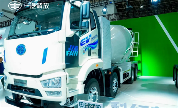 该车采用绿控电机270/450kw+4AMT,使用上装电机+液压系统驱动搅拌筒。搭载宁德时代电池组,电池容量为350kWh,支持双枪直流快充。该车百公里电耗为130-150kWh,续航公里达200km以上。