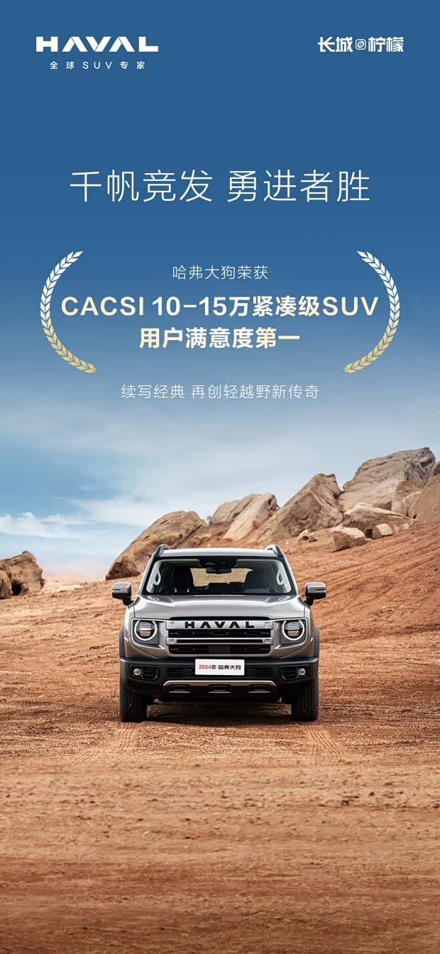 不久前,由中国质量协会等权威机构主办的最新一期“中国汽车行业用户满意度指数CACSI”测评结果正式揭晓!其中,哈弗大狗荣获“10-15万紧凑级SUV用户满意度第一”。哈弗二代大狗则荣获CACSI│2023市场关注新车(SUV)用户满意度第一,可谓是一骑绝尘,领跑轻越野赛道。