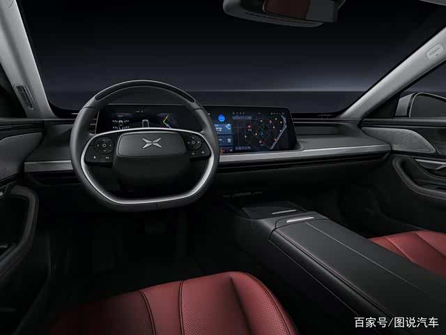 小胖P7主打的也是科技感,但同时又营造出一种非常极简风,和外观干练简单的设计呼应,平直简洁的中控台,搭载了流行的双屏连动设计,两幅式方向盘,支持触控操作,配合贯穿式镀铬饰条等设计,简洁干练,科技感浓厚,对开扶手箱黑色皮质以及红色缝线,设计感也运动感强。