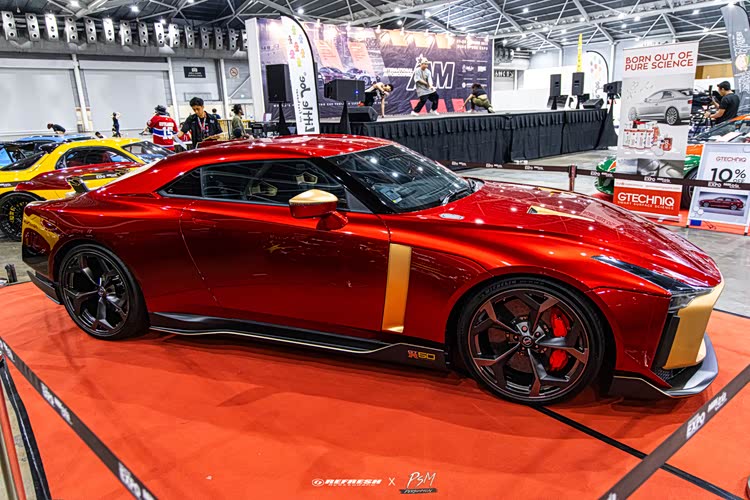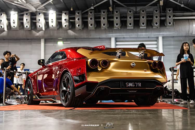 虽然这辆定制版 Nissan GT-R50 已经亮相了一段时间,这次我们就近距离的欣赏 + 回顾一下这辆独一无二的 GT-R50吧。首先这辆 Nissan GT-R50 by Italdesign 是订制版本,这位 VIP 车主选了“Iron Man 钢铁侠”的风格,采用红 + 金色混搭,彰显出了非常未来 + 科幻的视觉效果,再加上 Nissan GT-R50 是由国际知名设计师 Italdesign 亲自设计而成,那独特的外形设计,专属的空力套件,Carbon Fiber 碳纤维轮圈,LED 熏黑头灯,立体式 LED 熏黑尾灯,可调式巨大尾翼等等,整个外形简直帅爆,回头率爆表!
