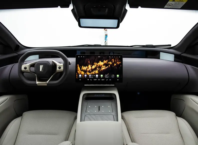 内饰方面,新车内饰强调科技感和美感,扁平造型的方向盘设计在方向盘两侧配有球形控制旋钮。中控台配备了一块35.4英寸的4K全景宽屏,两侧是一块外部流媒体后视镜显示屏,中控台则配备了一个由HarmonyOS 4.0供电的15.6英寸中控屏幕。在中控台上设置了自适应升降式无线充电岛和载杯架,这样的设计看起来更美观、更有档次,还配备了氛围灯。同时,阿维塔12还支持APA、RPA、AVP等丰富的辅助泊车功能。
