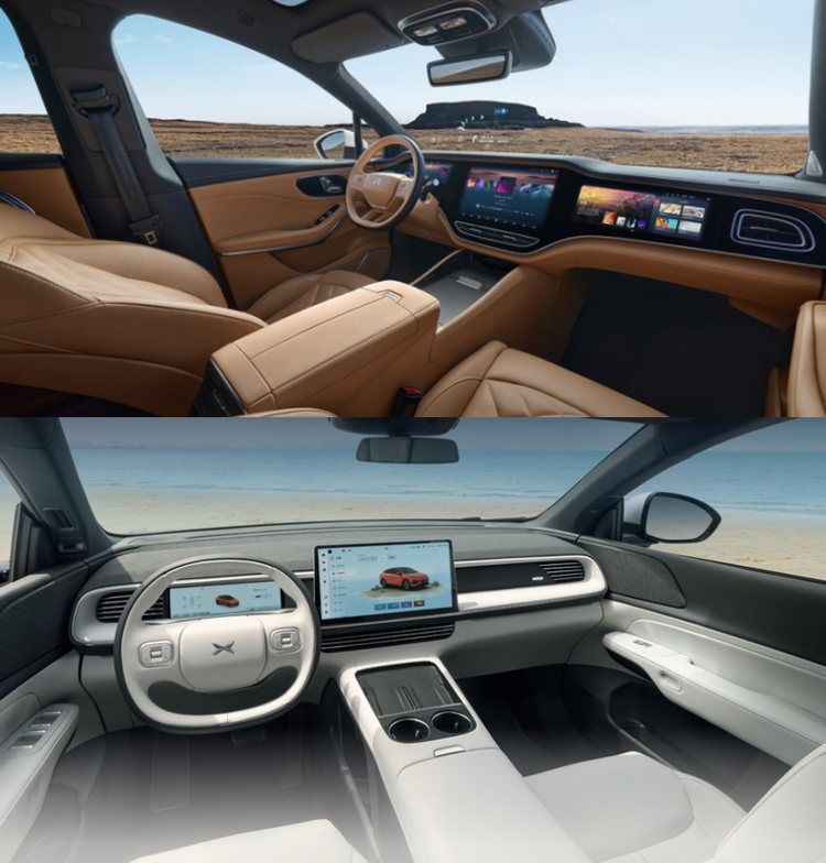 在内饰品质上,两款车也有着不小的差异化,小鹏G6倾向于极简风,这也是纯电车的传统设计风格。而新款飞凡R7则是将豪华和科技兼顾,43英寸的大联屏相当扎眼,同时也能很好的区分主驾智控全车和副驾娱乐等功能,不会出现对屏幕的抢夺权之争。