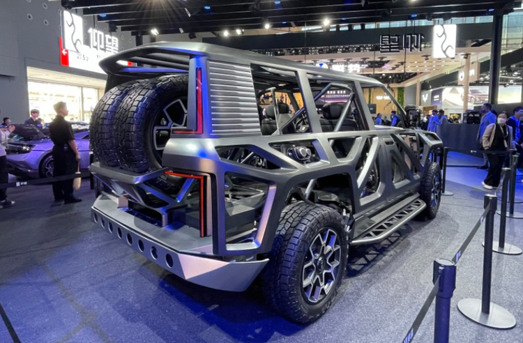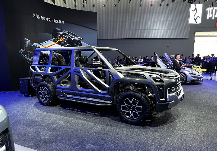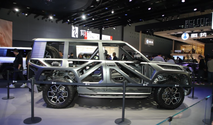 在本届车展上,仰望带了一款易四方概念车,该车采用镂空的设计,车内布满防滚架。