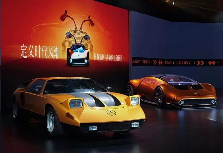 奔驰Vision One-Eleven概念车是以奔驰C 111实验车为设计灵感而打造出来的,不仅延续了C 111实验车扁平的圆角矩形设计,更复刻了C 111实验车的圆形雾灯及尾灯。新车定位于纯电超跑,车门使用鸥翼门,前后配备像素风格的显示屏。