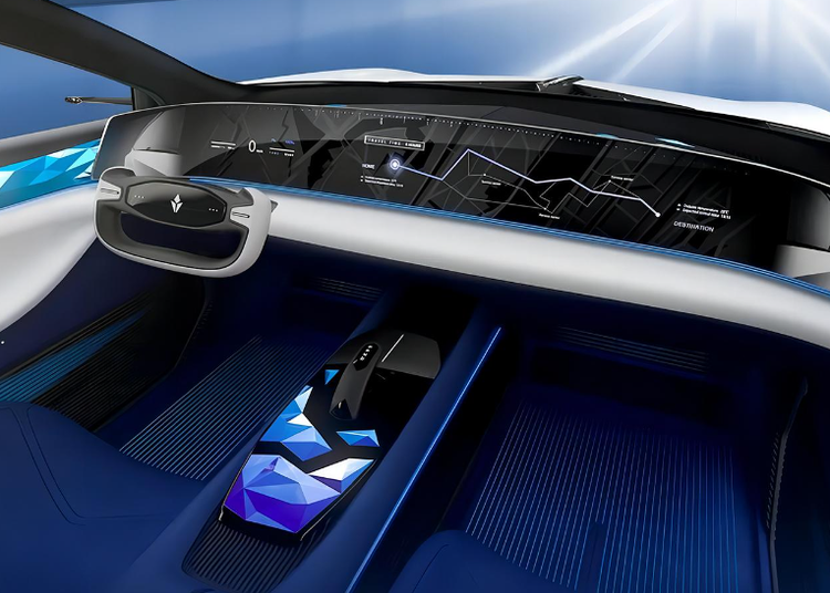 灵悉L概念车的内饰设计极具前卫,超大尺寸的贯穿式曲面大屏、异形方向盘、轻薄的座椅,以及超大的全景天幕,兼具科技与运动。