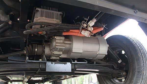 动力方面,共搭载6大块铅酸免维护电池,总电池容量为7.2Kwh。在家用220V电源充电的情况下,充满电需要6-8小时,跟我们现在的纯电动家用车充电时间差不多。车辆在空载情况下最大续航里程可以达到120km,在三百公斤满载情况下最大续航能力为100km,可以说是很实用了。