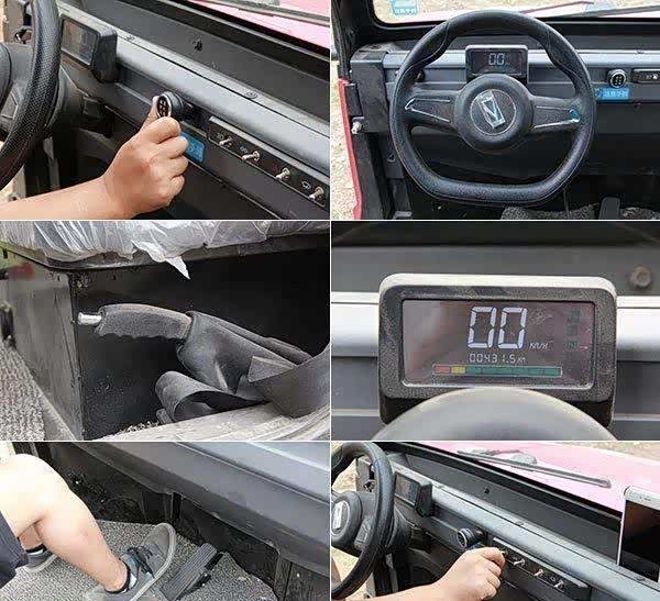 Pickman的内饰基本上没啥设计,空调,中控屏等电子设备一个都没有,只有仪表、转向、大灯以及雨刷拨杆,能满足日常使用而已。车上所有的控制都采用双位拨动开关,挡位分别是前后、停止和后退三挡。其实就是非常简单的操作,就算没有考驾照的人都可以很容易上手,当然这是不允许的,我只是想说明它的操作简单到什么程度罢了。