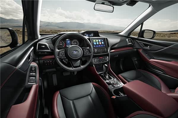 从颜值来看,斯巴鲁森林人STI版本就很符合户外车型的身份,前进气格栅、前雾灯罩、后视镜罩、侧裙、后扰流板等部位均进行熏黑处理,同时还配有运动感十足的18英寸轮毂,以及STI标识,可轻松彰显出其独特身份。车型内饰采用黑色与波尔多红的组合颜色,搭配融入红色与STI标识的仪表盘,能够轻松激发驾驶者驱车去冒险的欲望。