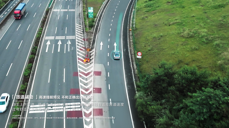 Deepal AD目前能够从容处理施工路段锥形桶、事故车辆、大型车辆、急弯、路沿护栏等复杂场景,匝道分合流通行成功率超98%,隧道、弯道、匝道、窄车道、收费站、汇流等12个场景,可结合车流、导航路径、道路环境、天气环境等自动调节车速,无需用户手动干预。