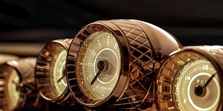 探究P72精致美妙的内装设计,简单说就是大量应用高级皮革与高质感金属这二大元素,外表几乎摸不到塑胶或碳纤维零件,但是洒狗血也必须洒对地方、洒对图案才叫艺术,因此De Tomaso P72从乐器与顶级音响发烧器材中得到许多设计灵感,并坚持不使用大型液晶屏幕,所有环形仪表都以模拟指针方式呈现,当然配色也很重要,但可以确定的是~这样的设计绝对会让人振奋、上赛道后绝对是欲罢不能!