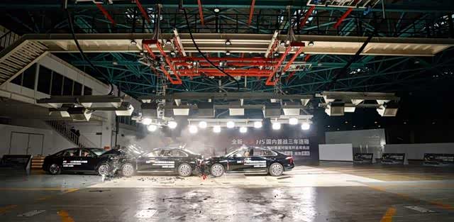 当然,“安全”没有绝对的标准,即便是获得“五星安全”评级的车型,也存在着优劣之分。前不久,全新 红旗H5(参数|询价)联合中汽中心开启了一场被誉为“魔鬼连环碰”的三车连碰公开试验,与常规的偏执碰撞、侧面碰撞不同,此次试验深度还原了前两车以100km/h的相对速度发生100%碰撞、第三次以50km/h追尾第二车的极端事故场景,最终,全新红旗H5以乘坐舱完整、车门可顺利打开、气囊瞬间点爆和三车假人伤害综合得分率均≥90%通过考验。