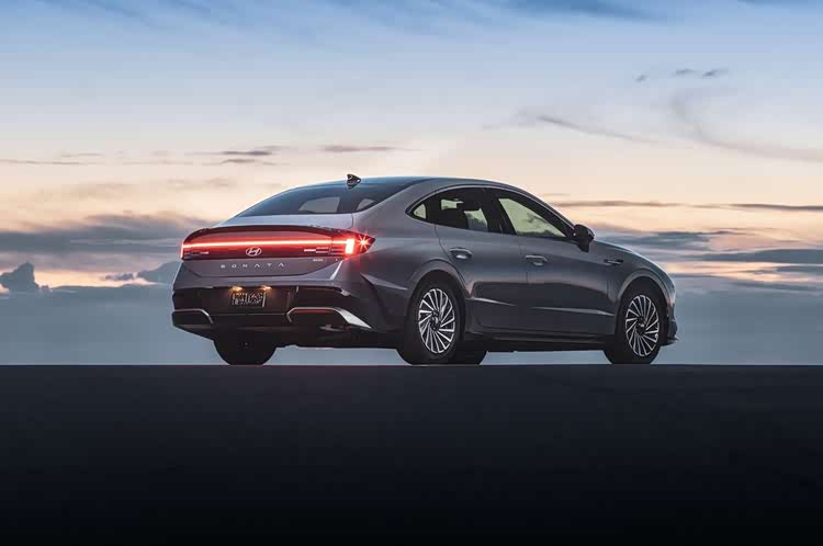 后四十五度,这是观赏第十一代 索纳塔的最佳角度,流畅的溜背线条,上翘的小鸭尾,与车头相呼应的贯穿式尾灯组,以及带镀铬装饰的饱满的后包围造型,整车给人的观感很是动感,而笔者上一次有类似的感觉,还是初见奥迪A7的时候。