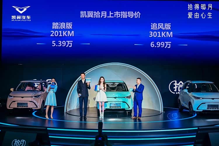 2023年接近尾声,内卷依然在持续升级。如今贴身肉搏战来到了A00新能源市场,定位为“大车级、小旗舰”的新能源精品小车 凯翼拾月(参数|询价)正式上市,两款车型踏浪和追风的指导价分别为5.39-6.99万元,将与五菱宏光MINIEV、长安糯玉米、吉利熊猫mini等车型展开角逐。