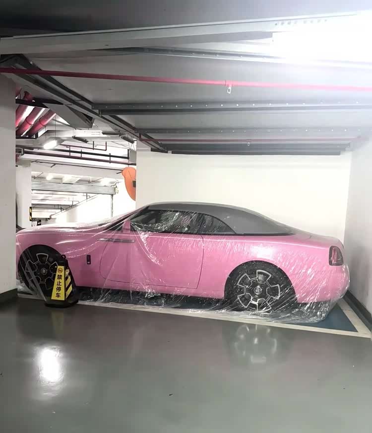 这辆拿塑料车衣盖着的是劳斯莱斯曜影,从轮毂来看,这是Black Badge车型上才有的轮毂,实际上这台是普通版的曜影。Black Badge版本的有一个无法改变的特点,就是车的顶棚是黑色,并且劳斯莱斯不提供其他颜色选择。王思聪就买过曜影,普通版的价格也不菲,落地达到了600万。