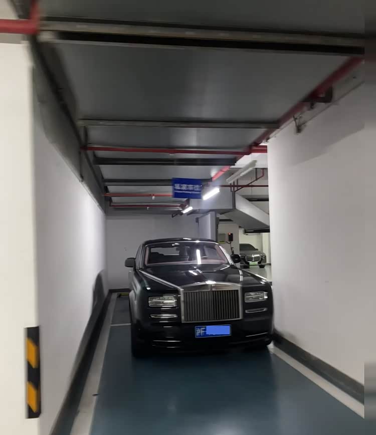 这是王思聪住的某公馆地库,他的车都放在了这里。作为20多万一平的小区,王思聪邻居们的出行交通工具都不会差。劳斯莱斯幻影,金字塔顶端的豪车,国内最为常见的幻影都是第七代,2003年就已经发布了,当时凭借着奢华的材料,先进的技术让对手望尘莫及。这台属于7.5代幻影,落地接近1000万。