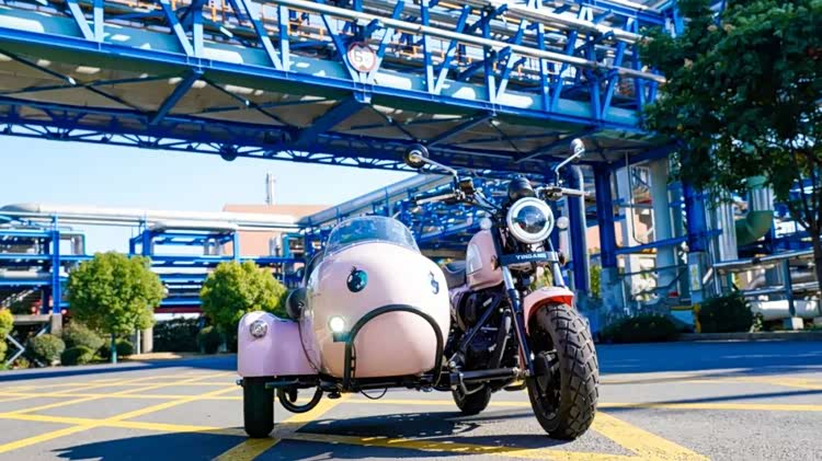 这款车的外观真是可爱又有活力,粉粉嫩嫩真是喜欢到心里。朋友说这是一款银钢鲸super mini挎子,仔细观察这款车以圆润的造型加上粉色的主色调搭配,让人少女心爆棚啊!边斗上两只灵动的“小眼睛”更是让它的整个基调都偏向于可爱型,很吸睛。