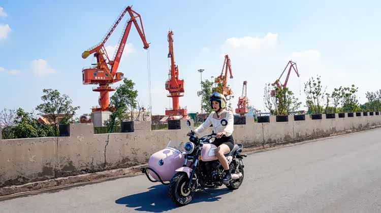 我们今天来的是德胜港,这面的骑行环境还是很不错的,背景好看,路面的车很少,真是个能尽情骑车的好地方。抱着试试的心态去试骑了一把,对于边三轮我还是个小白,但只要有驾驶摩托的经验,操控这款 mini侉子还是比较简单的。在急加速时会向右偏,大力制动会向左偏,这个还是值得注意的,操作温柔一些就可以了。