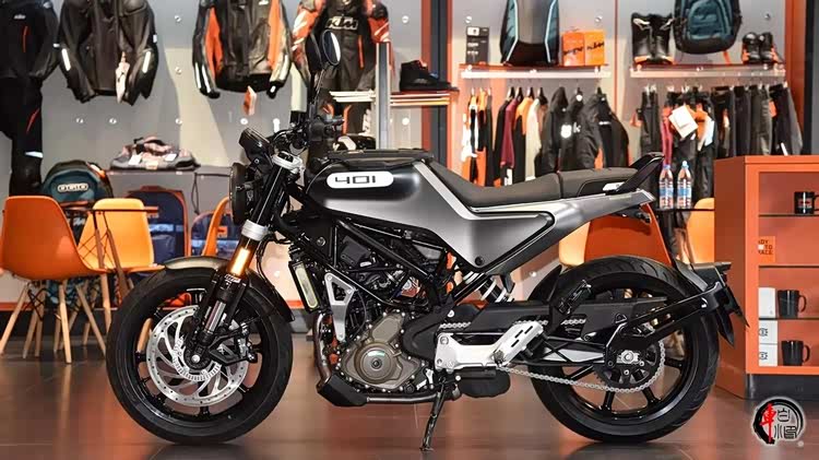 ◆ 底盘硬件 与KTM 390DUKE同平台设计,铬钼钢编织网框架结构,裸露的车身框架与复古颜值形成了鲜明的视觉冲击,油箱座椅的设计也很有特点,原厂在油箱位置提供了支架,浮雕般的401LOGO标志格外醒目,坐高810mm,整备质量158kg,油箱容量11L。