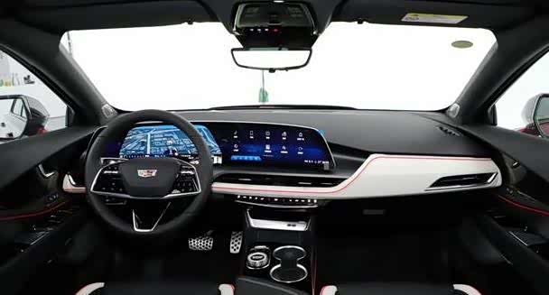 在内饰方面,GT4采用了凯迪拉克最新的家族设计,中控台上配备了一块33英寸超视网膜曲面屏幕,分辨率高达9K,搭载了骁龙8155芯片,智能化方面表现出色。新车还配备了带触控功能的三辐式方向盘和电子怀挡,方便驾驶人员操作。在用料方面,GT4仍保持了凯迪拉克一贯的豪华风格,大量采用皮料,给人一种高贵舒适的感觉。