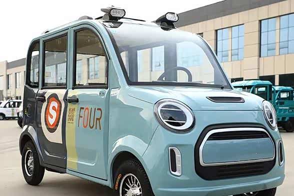 盛昊A8采用圆润的造型,外观颜值高,给人一种愉悦的感觉。车身前后采用拼色设计,增加了整车的时尚感。车身尺寸为2800×1270×1600mm,车内空间宽敞,为了提高乘坐的舒适性,车顶还配置了一个风扇一体式天窗,保证了车内空气的流通和凉爽舒适。此外,车顶还配备了一个铝合金行李架,不仅美观,还增加了储物空间,方便乘客们携带行李。