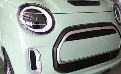 车辆的前脸采用了熊猫的造型,两个LED透镜大灯和圆形的日行灯设计可爱乖萌,同时提供了良好的照明效果,保证了夜间行车的安全。车辆的尾部配备了突出的LED尾灯,亮度高且寿命长。此外,车顶还配备了两个高亮的射灯,不仅耗电低,亮度强,还能提供良好的夜间照明效果,保证了夜间行驶的安全性。