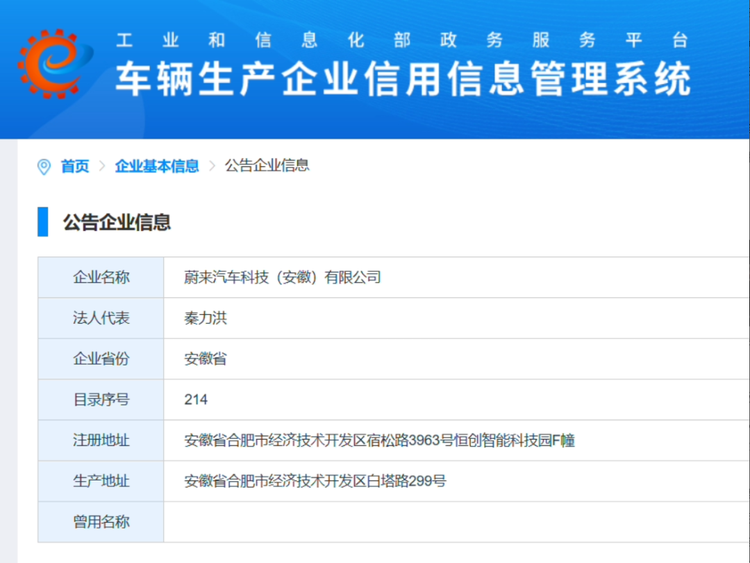 近日,据工信部网站显示,蔚来汽车出现在“车辆生产企业信用信息管理系统”中,从此信息解读来看,蔚来汽车已经获得独立生产资质,不过蔚来汽车官方暂未正式公布这一消息。