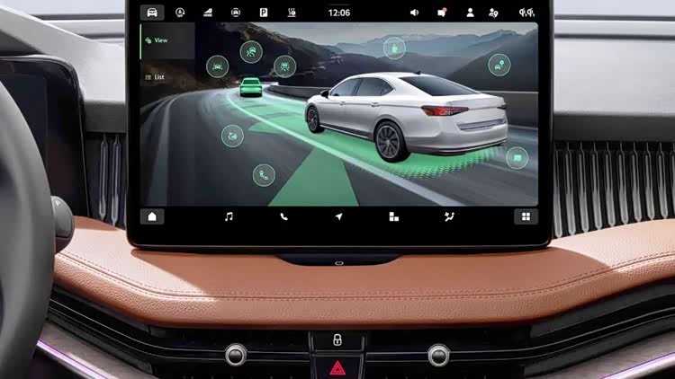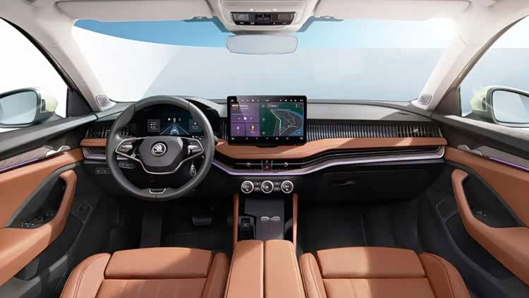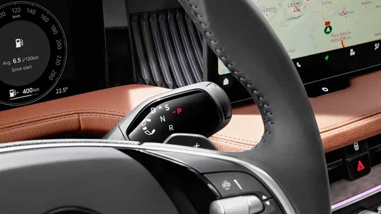 相对于外观,内饰的变化比较大。首先是一块13英寸的信息娱乐显示大屏伫立在仪表台中间,绝大部分的操作可以通过大屏实现,科技感氛围一下子提升了起来。虽然仪表台的线条不那么平直,但是物理按键大大减少,换挡杆变成了怀挡操作,中控台也一下子简洁起来,也让车内显得更加整洁和宽敞。方向盘前方是10英寸的液晶仪表,可以很直观地浏览驾驶信息,另外HUD也首次装备在了Superb上。
