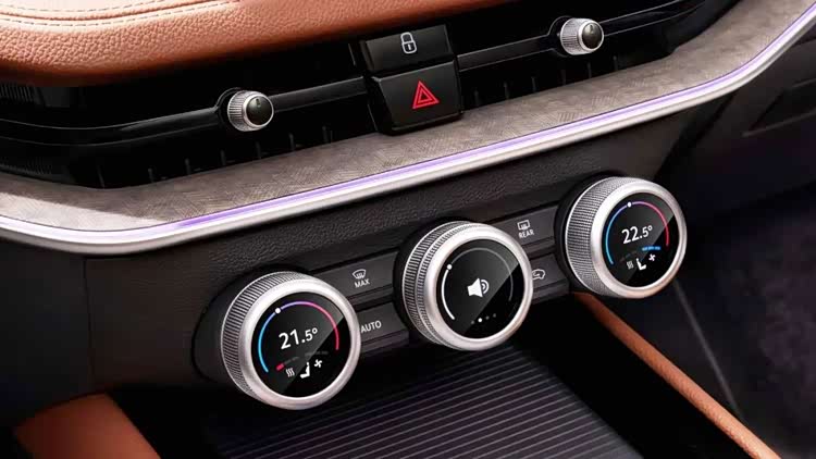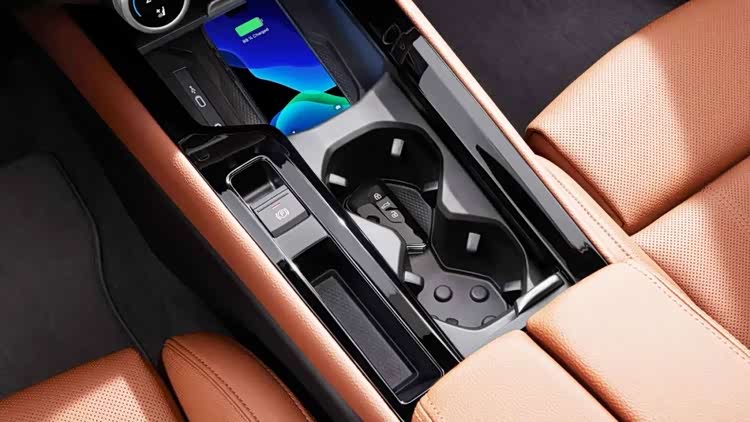 配置上也与时俱进,中控台上配置了无线充电功能,还增加了座椅按摩功能。另外,中控台与仪表台连接处的带显示功能的三圆旋钮,两边的是调节座椅加热通风和温度,中间的可以自定义功能操作,包括音量、驾驶模式、智能空调、空调风速、出风模式和地图缩放,可选择其中四个选项,并通过长按切换这四个功能。