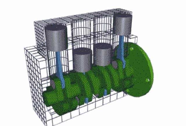 四缸发动机多以是L型直列四缸为主,优点是结构简单,做功平稳,故障率低,结构紧凑且轻量化,点火顺序为1342,或者是1243,在运动做功的过程中,总是两组活塞同时运行的,发动机在做功的过程中带来的惯性作用力可以相互抵消,运行状态也会相对稳定平稳,原理如下图: