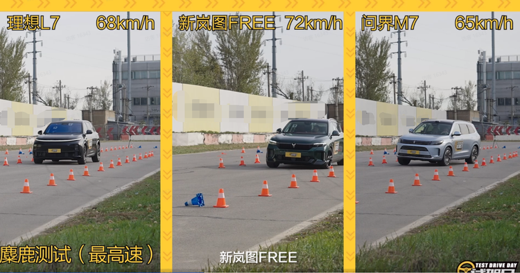 包括在动态表现中,理想L7虽没出现较离谱的车轮悬空,但我们也明显能看出,理想L7面对连续高速并线时,它的底盘支撑和转向灵活都不及岚图FREE丝滑。应对极限工况时,岚图FREE可圈可点的贴地感和整车循迹性,在三台参与测试的家用SUV中,也是标杆级存在。