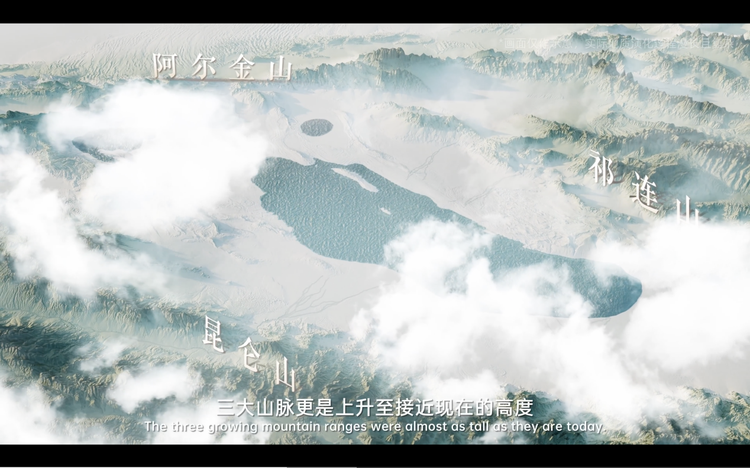 同时从主持人的口述中,我们了解到柴达木盆地曾经是一个充满生机的湖泊,面积是现今青海湖的10倍以上。