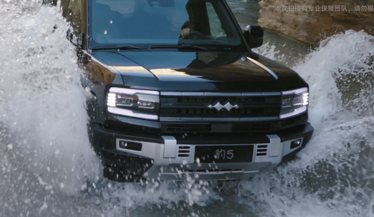 特别是在通过昆仑大峡谷的的时候,我们也看到了豹5作为一台硬派越野车所具备的涉水能力,毕竟这才配得上它这款方方正正的车身设计给我们带来的“固有印象”。