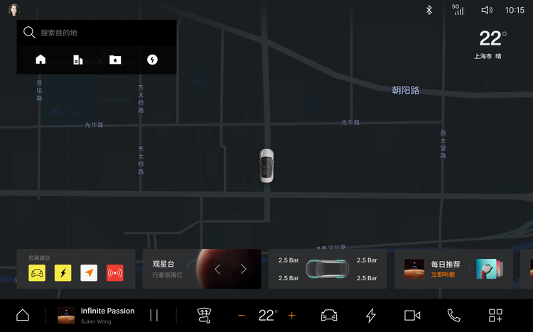 对于壁纸桌面模式,用户可以自由选择内置的壁纸,甚至在节假日享受到定制壁纸的推送。此外,极星4智能桌面还提供了自由排序和自定义内容的快捷卡片功能,用户可以根据自己的音乐偏好、旅行计划或日常通勤需求来定制应用,实现个性化和直观的操作体验。