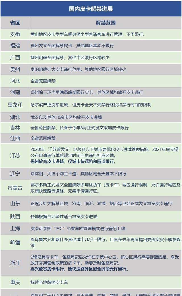 汇总最新皮卡解禁政策,涉及20个省,这些地区完全不限行
