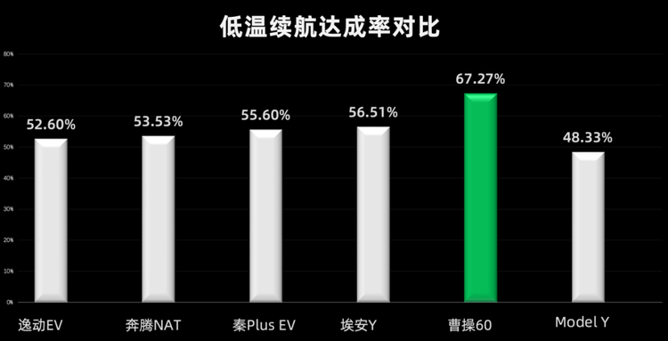 不过在实际使用中,吉利曹操60实测在-17℃、车内温度22℃的情况下,续航实际达成率为67.27%,在主流热销网约车中均排名第一。秦 PLUS EV 的续航实际达成率仅为55.60%,这样算下来,曹操60低温续航能达到280km,秦PLUS EV仅为234km,也就是说,如果一位网约车司机在冬天驾驶秦PLUS EV,很可能需要一天充电两次,这带来的时间成本就不言而喻了。