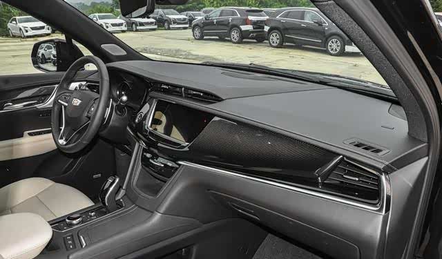 内饰方面,8英寸的中控屏幕不大不小,使用的是凯迪拉克一贯的嵌入式设计,使其整体看上去更为融合。用料方面采用大面积软质材料包裹,也符合美系车用料足的人设。真皮包裹下加上零零散散的饰条装饰使其整体展现更加成熟稳重,年轻客户群体也可选择碳纤维饰板更加运动激情。