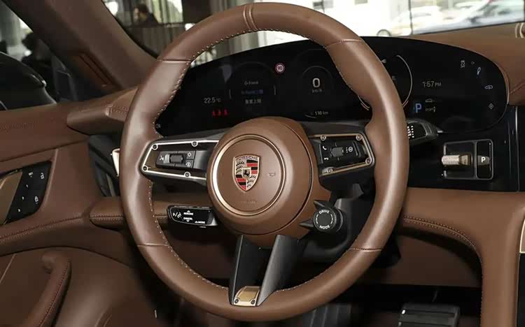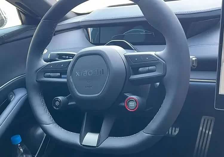 内饰方面, 小米SU7(参数|询价)的三辐式方向盘和保时捷Taycan也比较类似,并且在左右两侧配备了两个旋钮。