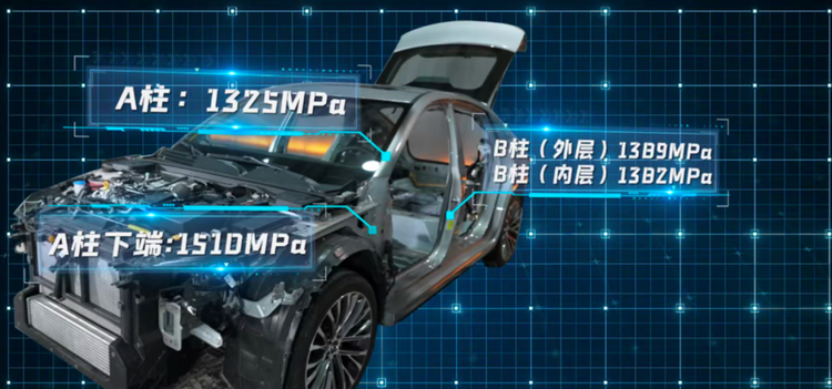 而第四代B70整体材质强度和关键部位均强化。车身高强钢占比达76%,同级车型占比最高,超硬车体结构热成型钢占比高达22%,抗拉强度 1500MPa及以上,屈服强度950MPa以上,是汽车车身使用强度级别最高的材料之一,相当于15吨的力作用在一平方厘米上都不发生断裂。