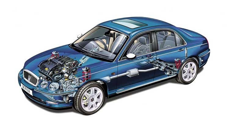作为一款前横置引擎的前轮驱动车型,罗孚75拥有只有后驱车型才会采用的中央传动轴通道和横向钢梁,这种设计也让人们对罗孚75与E39 5系之间的关系浮想联翩。