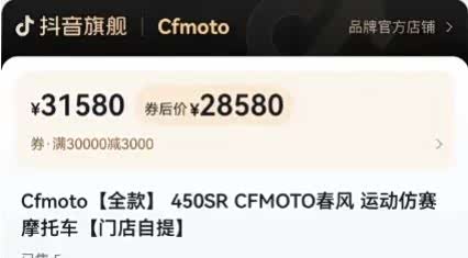 但近日,有车友爆料春风动力旗下的450SR相比原来有了一定优惠,最高可以享受3000元的福利,这使得这款车的价格从原来的3万出头变成了现在的28980元。