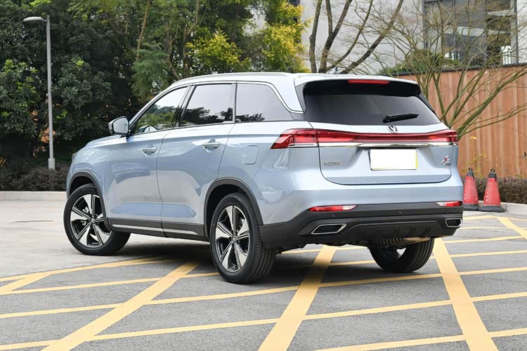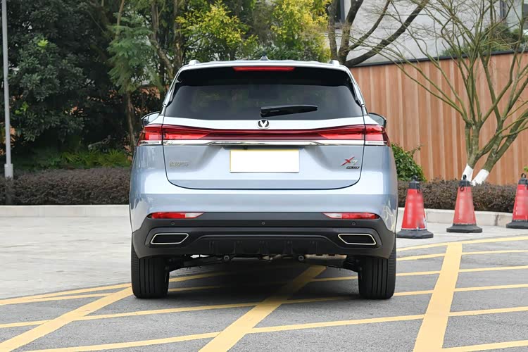 尾部厚重饱满,车顶末端有小型扰流板和高位刹车灯,贯穿式尾灯是我们熟悉的样子,而车尾的欧尚车标也换成了长安V字车标,牌照右下方的X7 PLUS标识表明其身份,黑色后包围上的双边排气只是镀铬装饰,真正的排气筒隐藏在了车底。